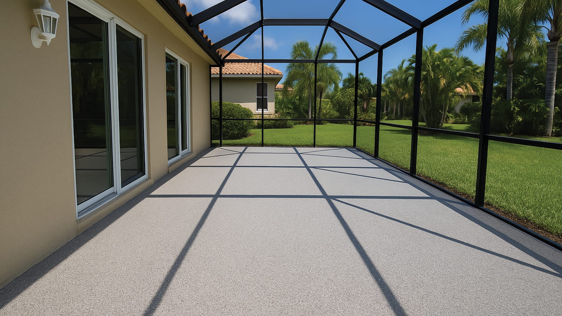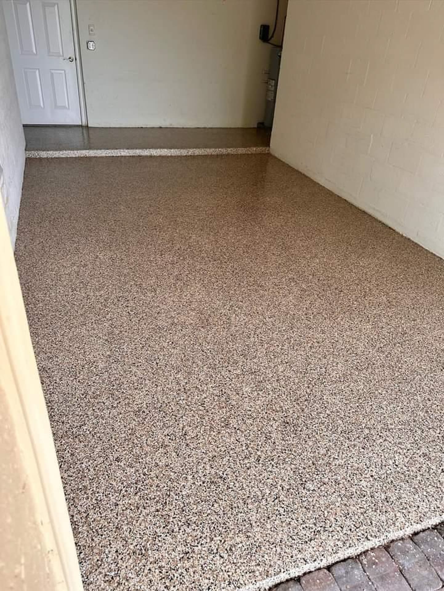 Also called decorative flake flooring or chip flooring, flake epoxy flooring consists of a base layer of industrial-grade epoxy or polyaspartic resin, a full broadcast of colored vinyl flakes, and a clear, UV- and chemical-resistant topcoat. The result? A highly durable floor with a textured finish that resists slips, hides dirt, and holds up to daily wear.Flake epoxy flooring is one of the most popular and practical choices for both homeowners and businesses in Southwest Florida. Known for its strength, visual appeal, and low maintenance, this system performs beautifully in garages, patios, shops, pool decks, and more.